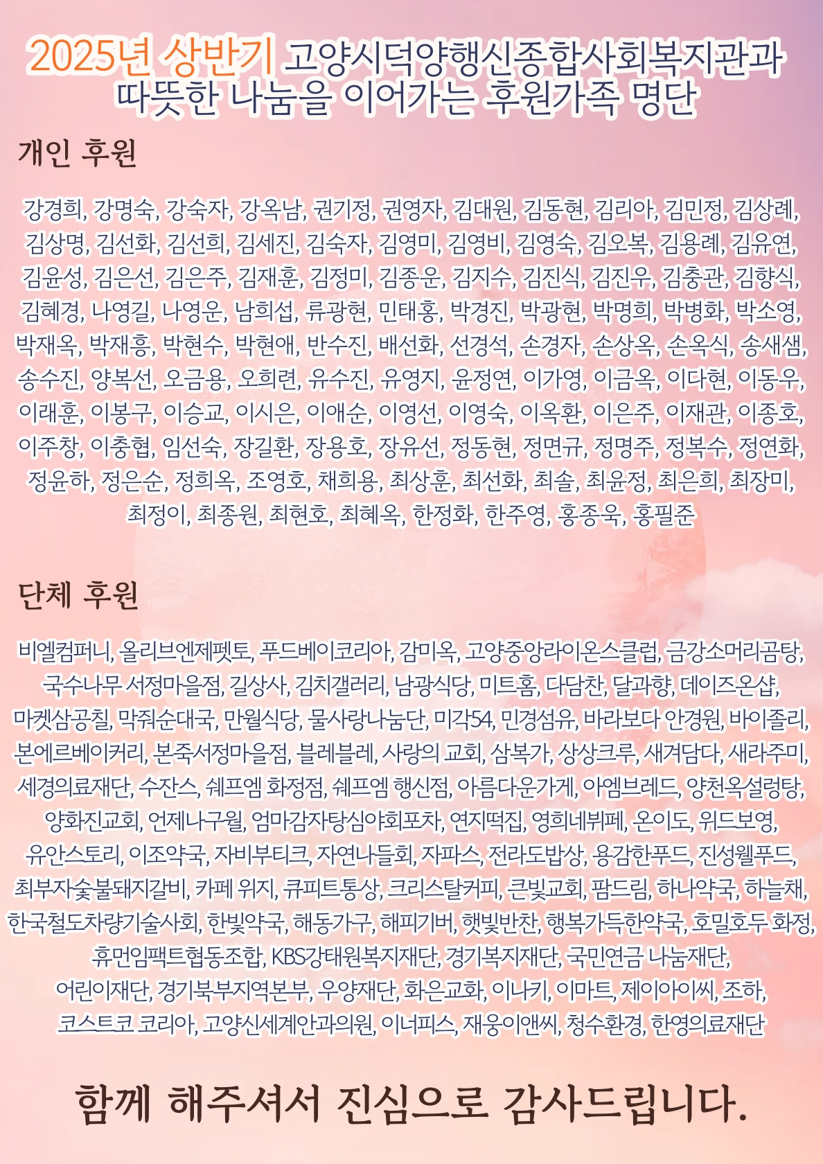 | 제목 | 2025년 상반기 개인 및 단체 후원자(처) 명단 | ||