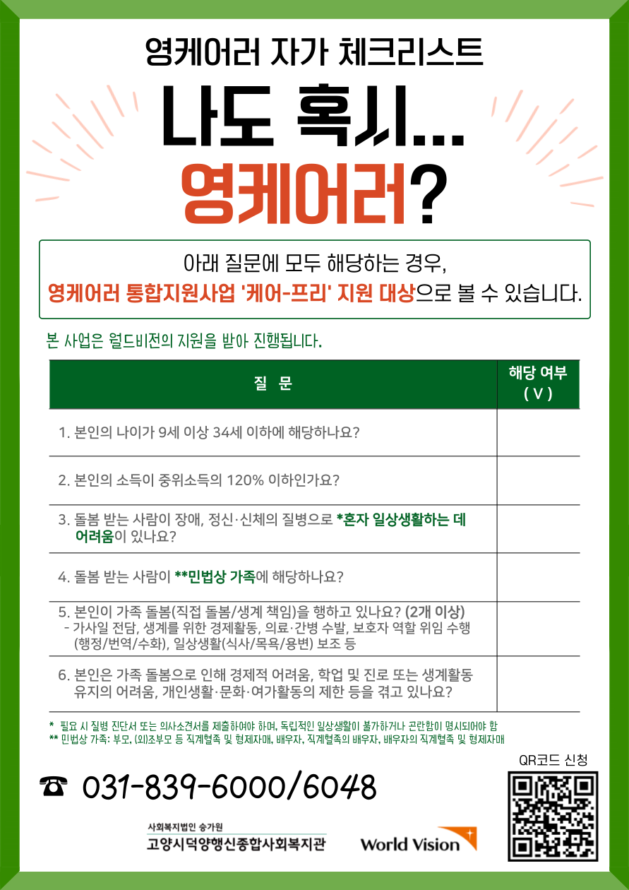 | 제목 | 고양시 거주하는 가족돌봄청소년(영케어러)을 찾습니다! | ||