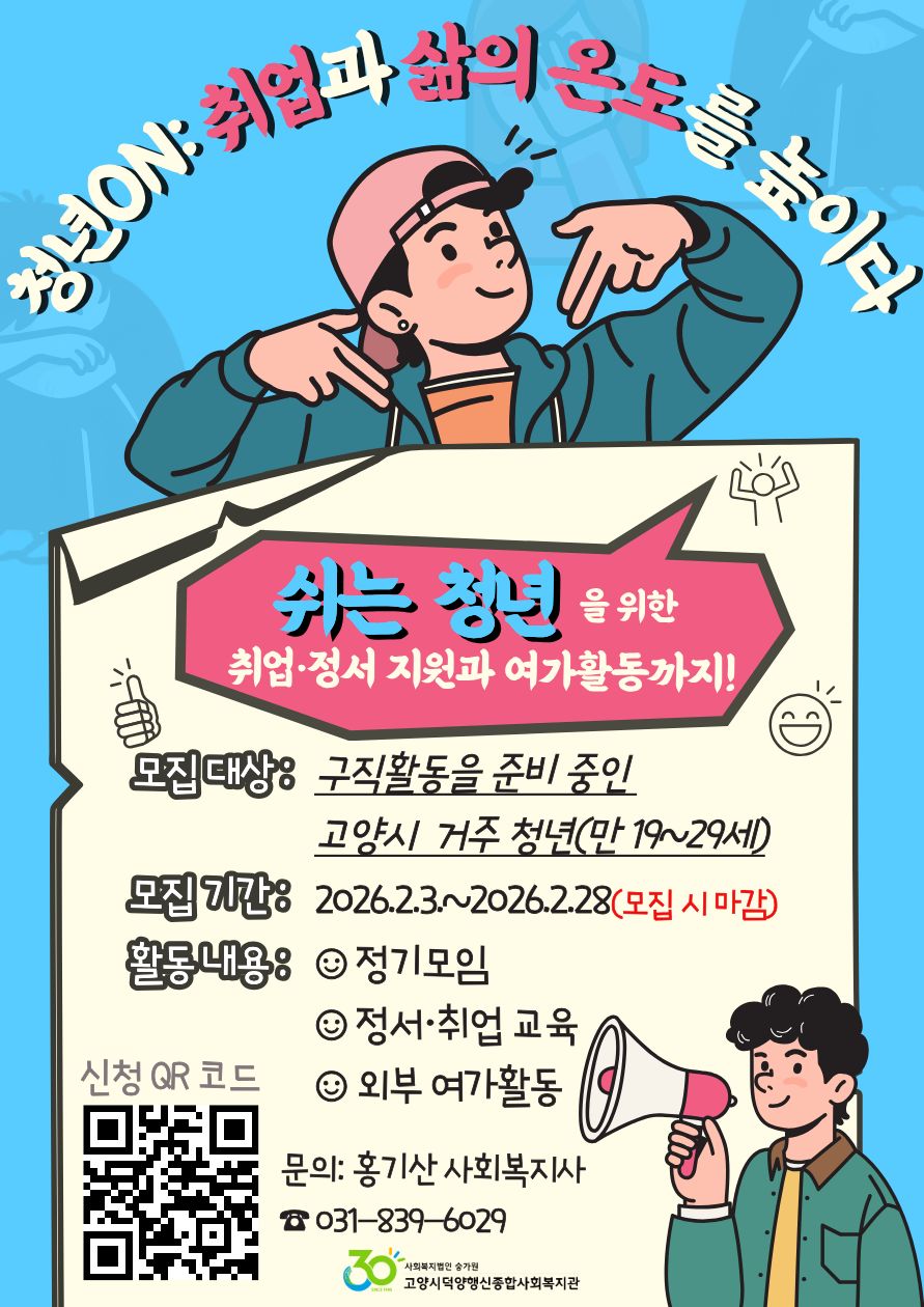 제목 쉬는청년지원사업 '청년ON' : 취업과 삶의 온도를 높이다 <청년 참여자 모집!>