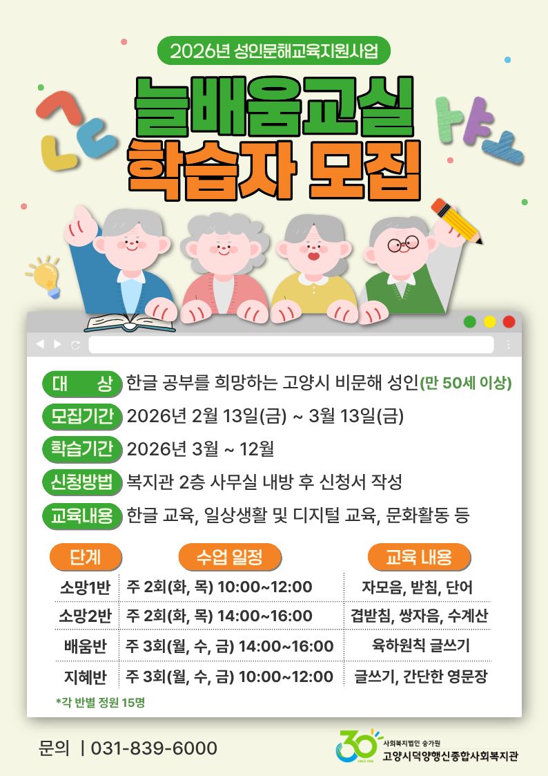 • 2026년 성인문해교육지원사업 학습자 모집
