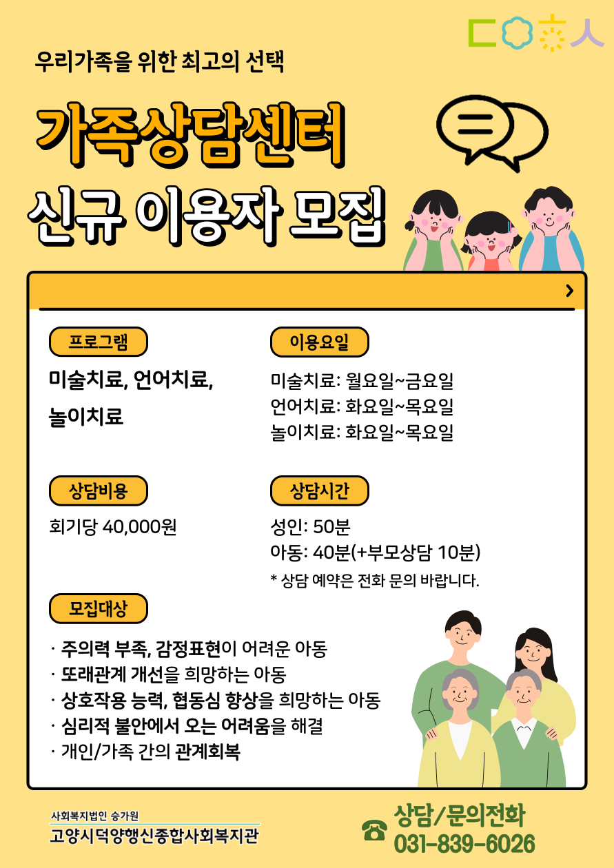 가족상담센터 신규 이용자모집