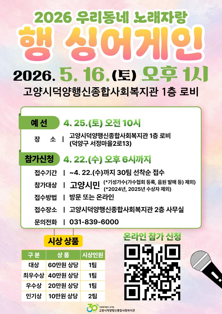 2026년 주민여가문화지원사업 '우리동네 노래자랑_행싱어게인' 참여자 모집