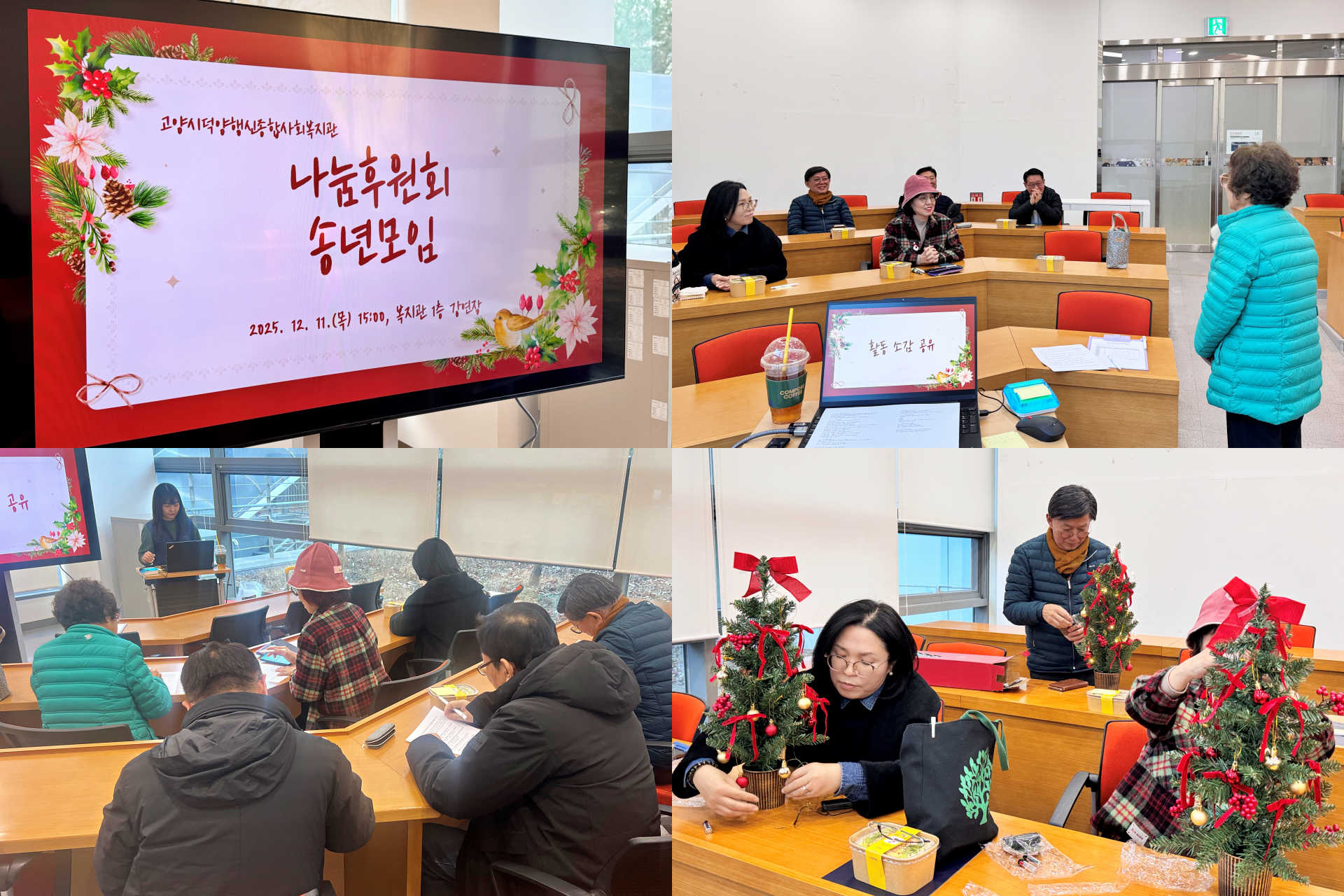 12월 11일(목), 고양시덕양행신종합사회복지관은 나눔후원회 송년모임을 진행하였습니다. 한 해 동안 함께해온 활동을 돌아보고 서로의 소감을 나누며 따뜻한 시간을 가졌습니다.