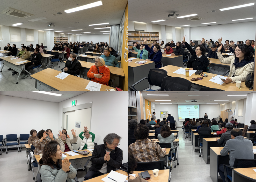 마음 열기 활동을 시작으로 마을공동체의 의미를 함께 생각해보고, 다른 지역의 사례를 통해 우리가 만들어갈 모습도 그려보았습니다. 특히 “공동체는 거창한 일이 아니라 작은 관심과 참여에서 시작된다”는 메시지에 많은 주민들이 공감하며, 일상에서 실천할 수 있는 작은 행동들을 서로 나누었습니다.