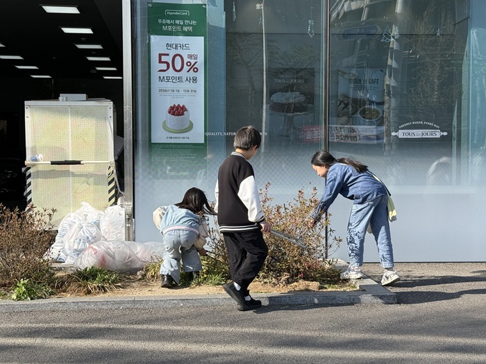 퀴즈 후에는 행신2동 마을을 탐방하며 가장 쓰레기가 많은 곳을 발견하고 직접 치우고 누가 누가 더 많은 쓰레기를 줍나 경쟁하며, 구석구석 숨어있는 쓰레기들을 발견하는 재미에 푹 빠졌답니다. 가장 무거운 양의 쓰레기를 주운 팀에게는 상품도 주어졌는데요.