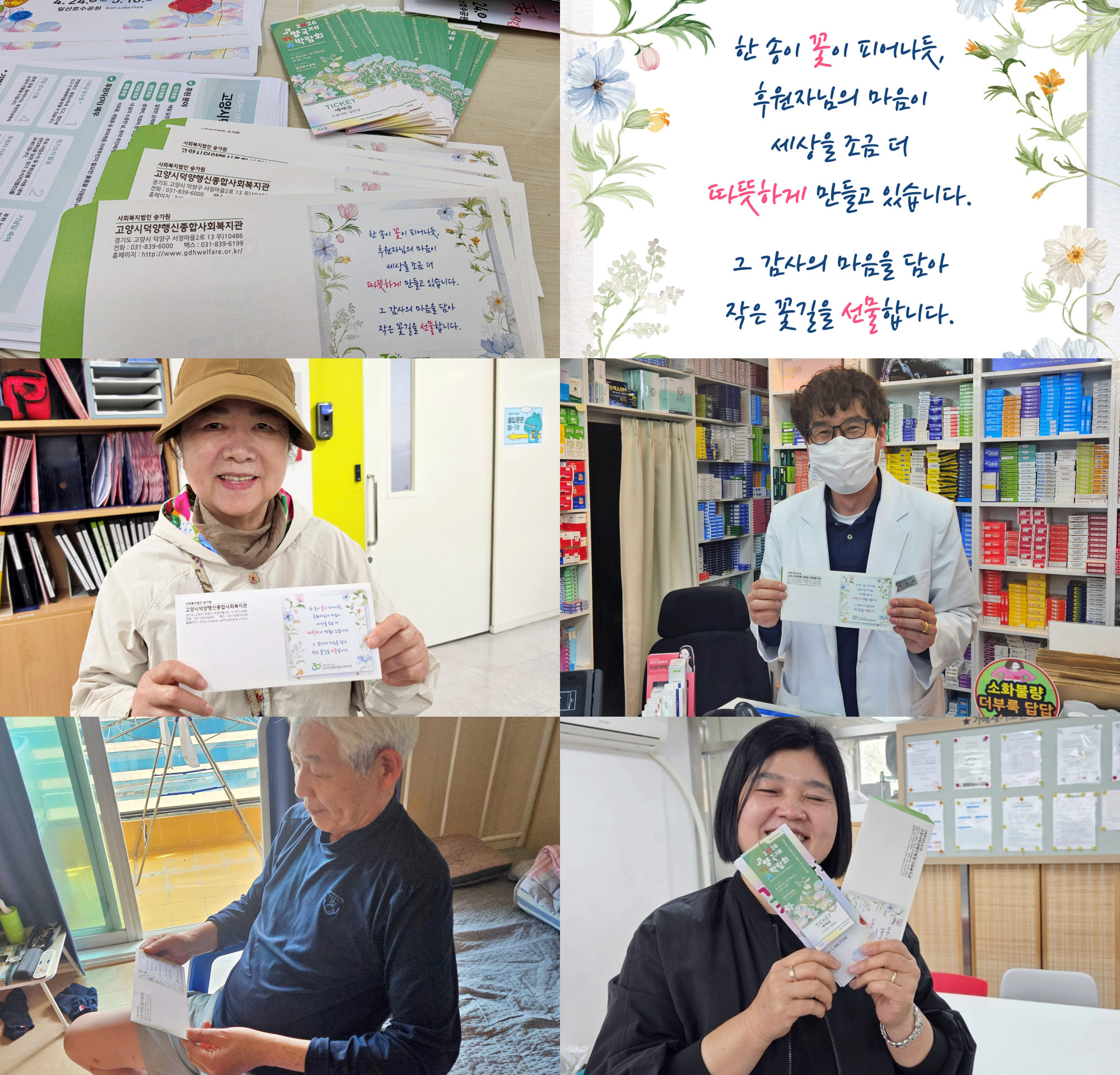 고양시덕양행신종합사회복지관은 평소 소중한 인연을 이어오고 있는 후원자분들께 감사의 마음을 전하고자 특별한 시간을 마련했습니다. 총 50곳의 신규후원자(처)를 선정하여 고양꽃박람회 티켓을 전달했습니다.