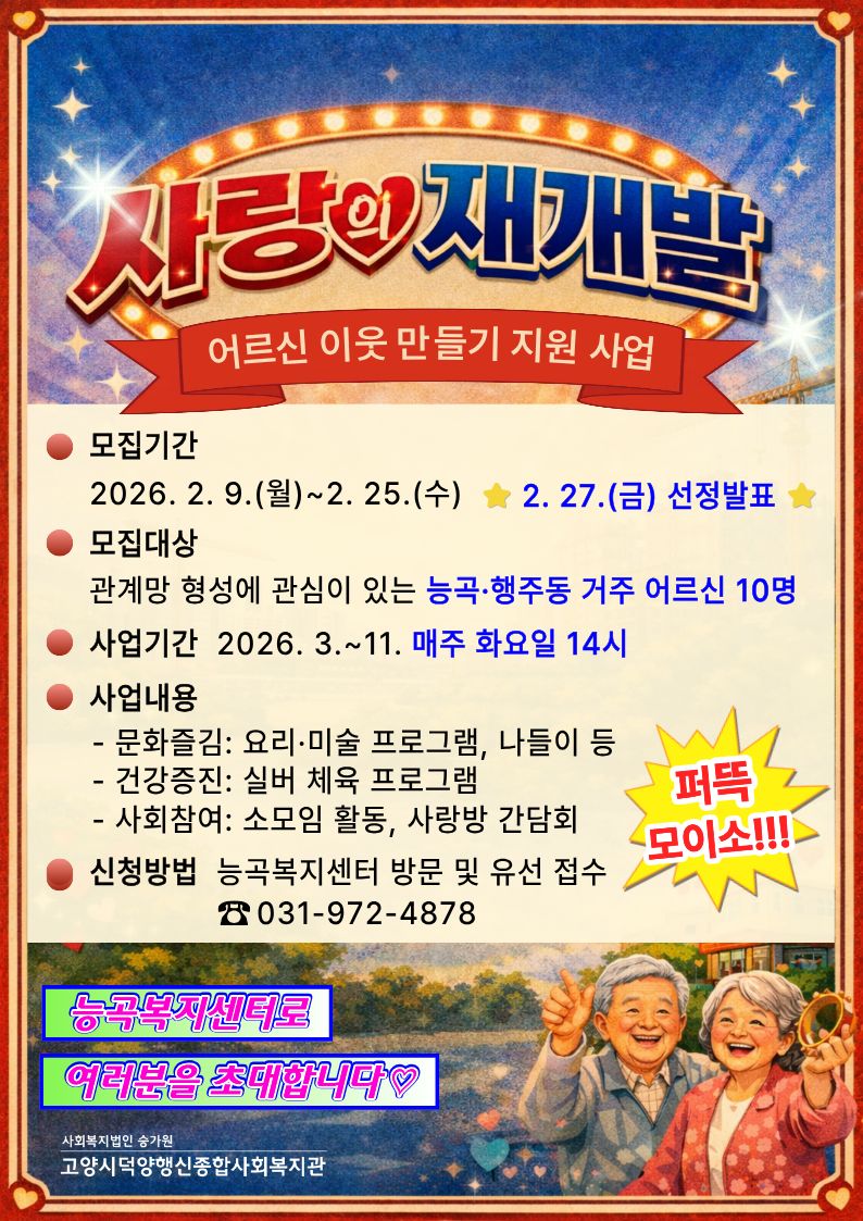 재개발 지역 어르신의 사회적 관계 증진을 위한 이웃 만들기 지원사업 '사랑의 재개발' 참여주민 모집