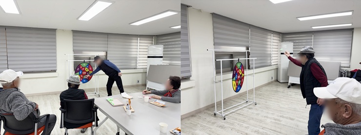 지난 회기에 진행하였던 윷놀이, 투호 놀이와 같은 던지기 놀이에 이어 이번 활동은 주민분께서 의견을 전달해주신 다트 게임을 진행하였습니다!