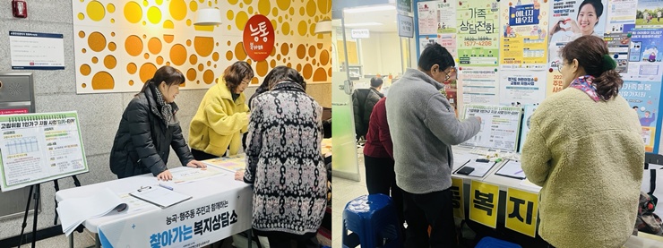 전문교육 수강 후 지역주민들을 대상으로 진행하는 찾아가는 복지교육도 함께 진행하였는데요! 각 동별 행정복지센터 내에서 능곡팀 행주팀 모두 지역주민을 대상으로 고독사 예방, 사업 설명을 진행하였습니다!