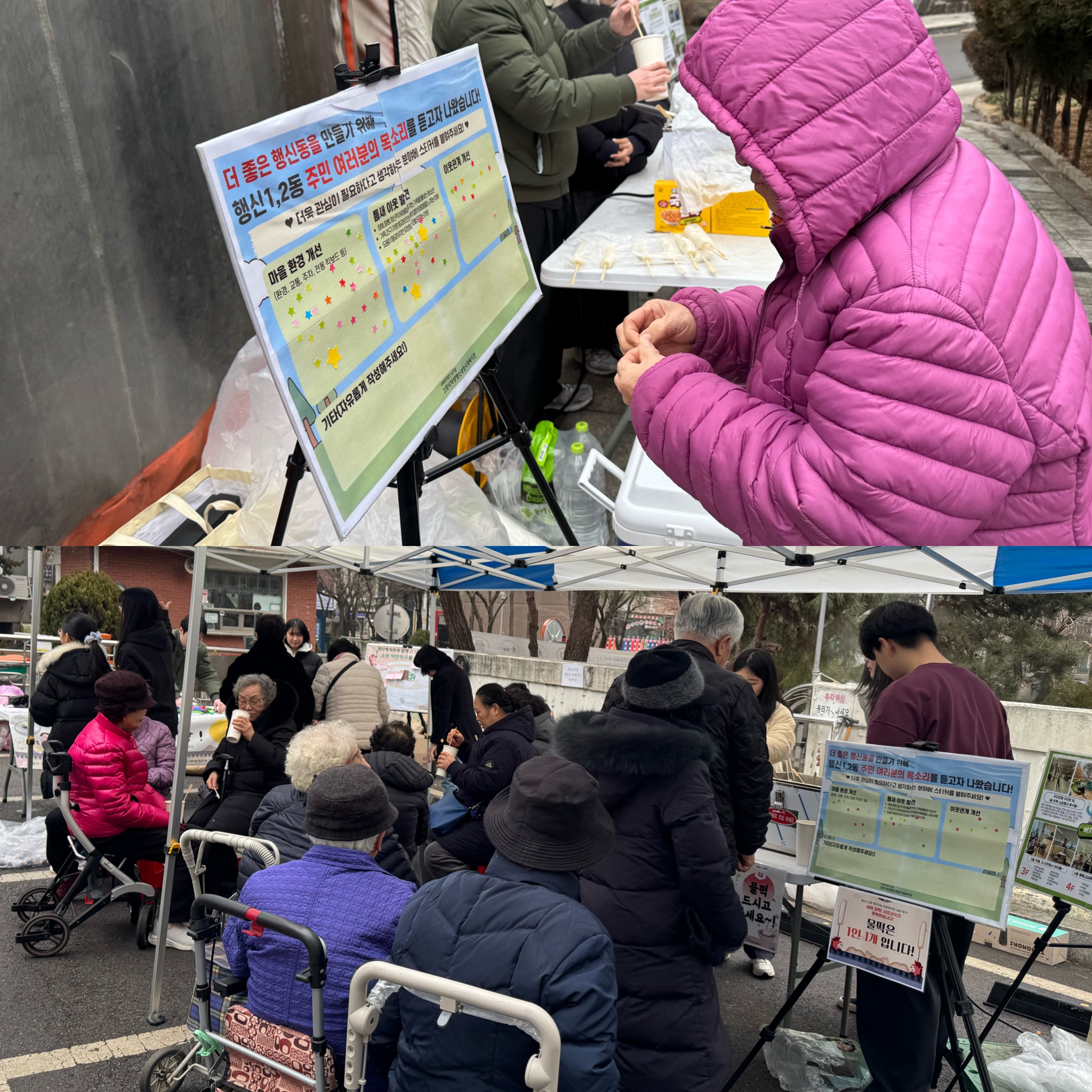 즐거워 하는 모습을 보니 덩달아 행복해지는 시간이었습니다. 특히, 마을 의제 판넬을 통해 “아무래도 복지관에서 마을 환경이나 어려운 이웃들을 발견 하는 데 힘써주시면 좋겠어요.”와 같은 소중한 마을 의견을 들어볼 수 있었습니다. 이번 행사를 위해 적극적으로 협조해주신 샘터마을2단지와 3단지 관리사무소장님들과 직원분들께 깊은 감사인사를 드리며 앞으로도 이동복지관은 주민 곁으로 더욱 가까이 다가가 소통하며 밝고 활기찬 마을을 만드는데 힘쓰겠습니다! #고양시 #덕양행신 #종합사회복지관 #덕양행신복지관 #생활복지 #복지공동체 #주민주도 #이웃 #행신1동 #행신2동 #지역복지 #동중심실천 #어르신 #이동복지관 #샘터마을2단지 #샘터마을3단지 #물떡 #설날