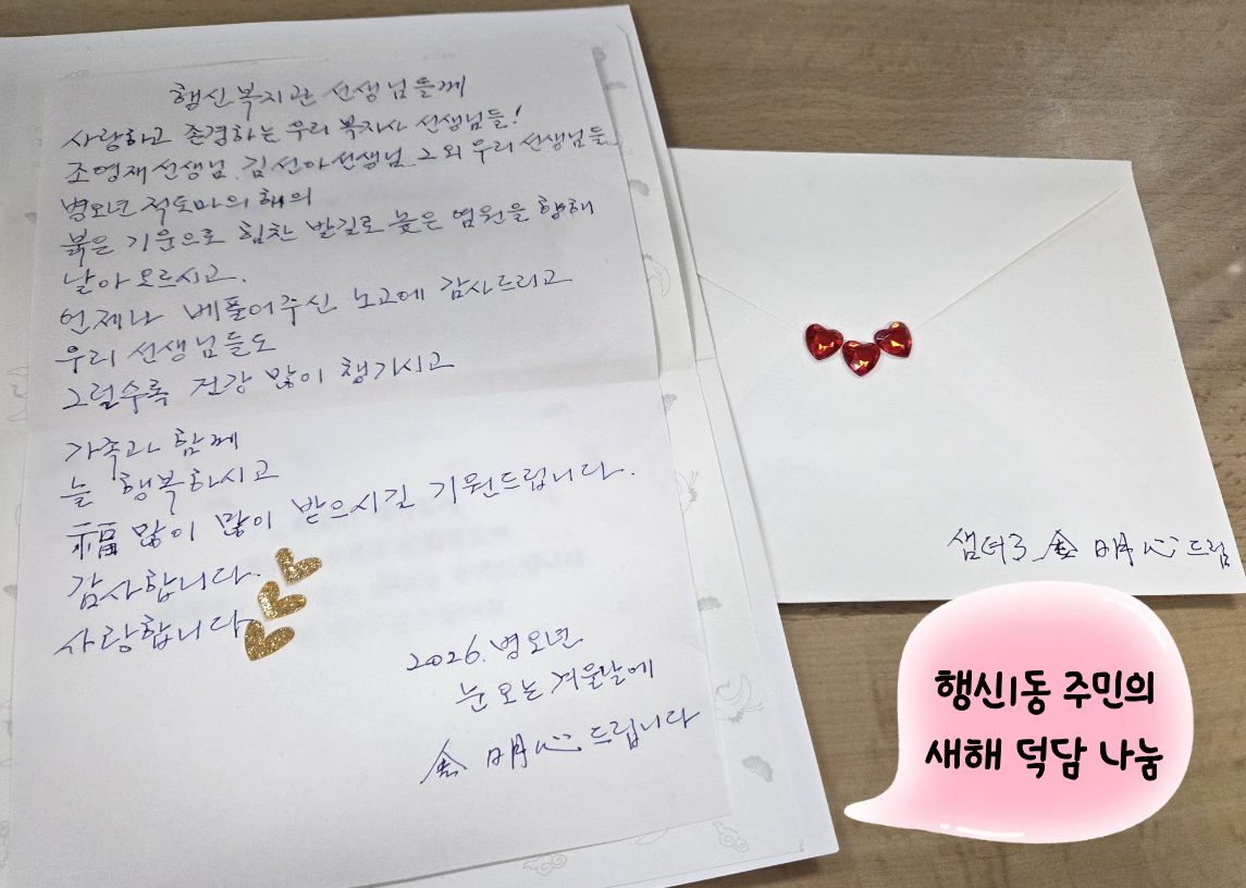 마지막으로 주민분이 직접 작성해주신 덕담카드를 전달해주어 명절을 앞두고 벌써부터 든든한 마음을 가지고 풍성해질 수 있었습니다.
