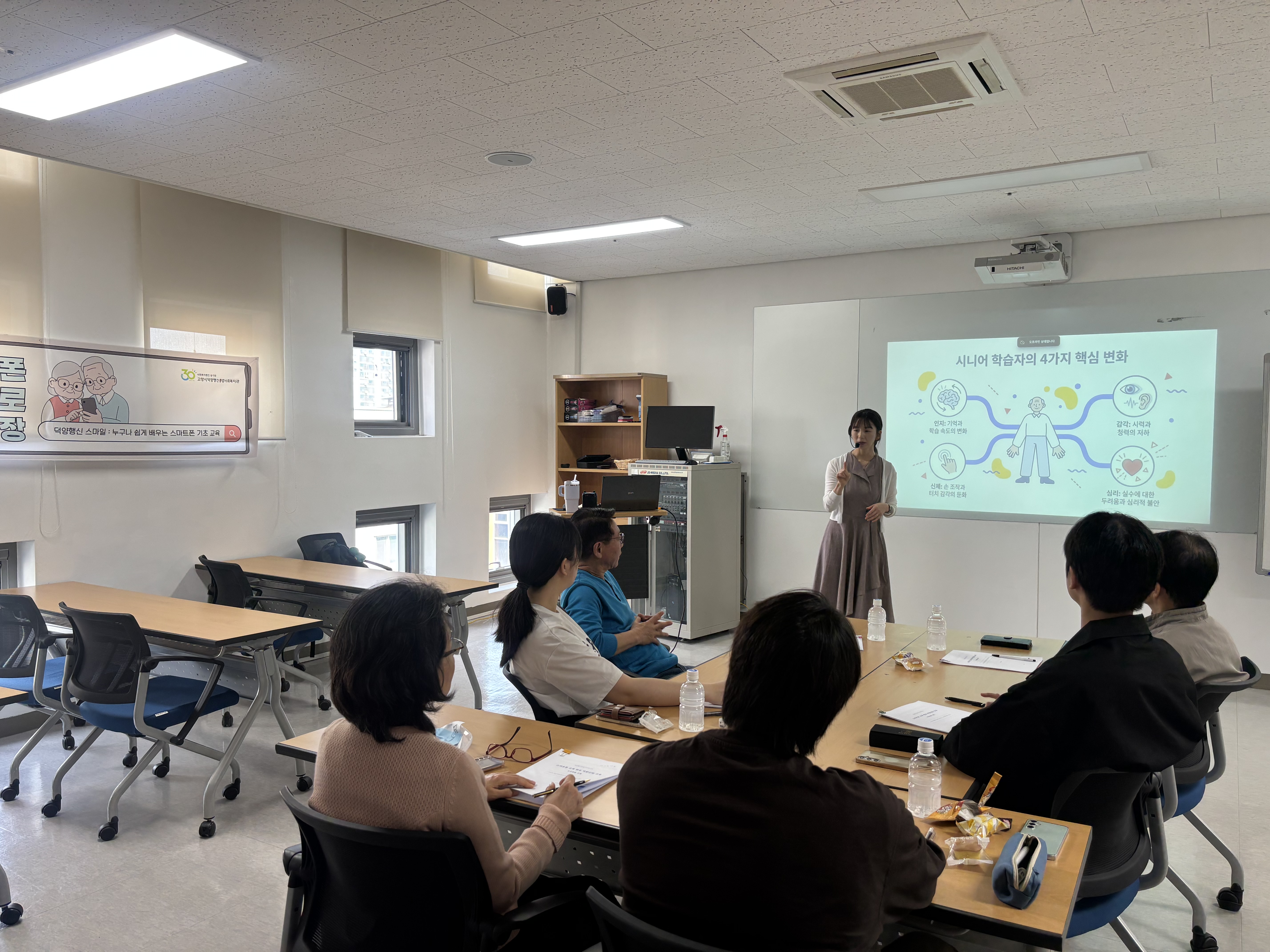 자원봉사자 역량강화 1회기를 진행했습니다. 시니어 학습자는 기억 속도, 터치 감각, 시력 등에서 일반 성인과 다른 특성을 보이기 때문에 이에 맞는 설명 방식과 교육 방법이 중요함을 함께 확인하는 시간이었습니다 또한 ‘한 번에 한 단계씩 설명하기’, ‘직접 해보도록 기다리기’ 등 실제 교육 현장에서 바로 적용할 수 있는 실습 중심 교육이 이루어졌습니다. 이후에는 약 30분간 봉사자들과 함께 스마트폰 교육 회기 구성에 대해 논의하며 참여자에게 보다 효과적인 교육을 제공하기 위한 의견을 나누었습니다. 봉사자들은 단순히 알려주는 것을 넘어 참여자가 스스로 할 수 있도록 돕는 역할에 대해 공감하며, 현장에서의 역할에 대한 이해를 높이는 의미 있는 시간을 가졌습니다 앞으로도 봉사자들과 함께 고민하고 성장하며 참여자 중심의 따뜻한 스마트폰 교육을 만들어갈 예정입니다! 많은 관심과 응원 부탁드립니다.