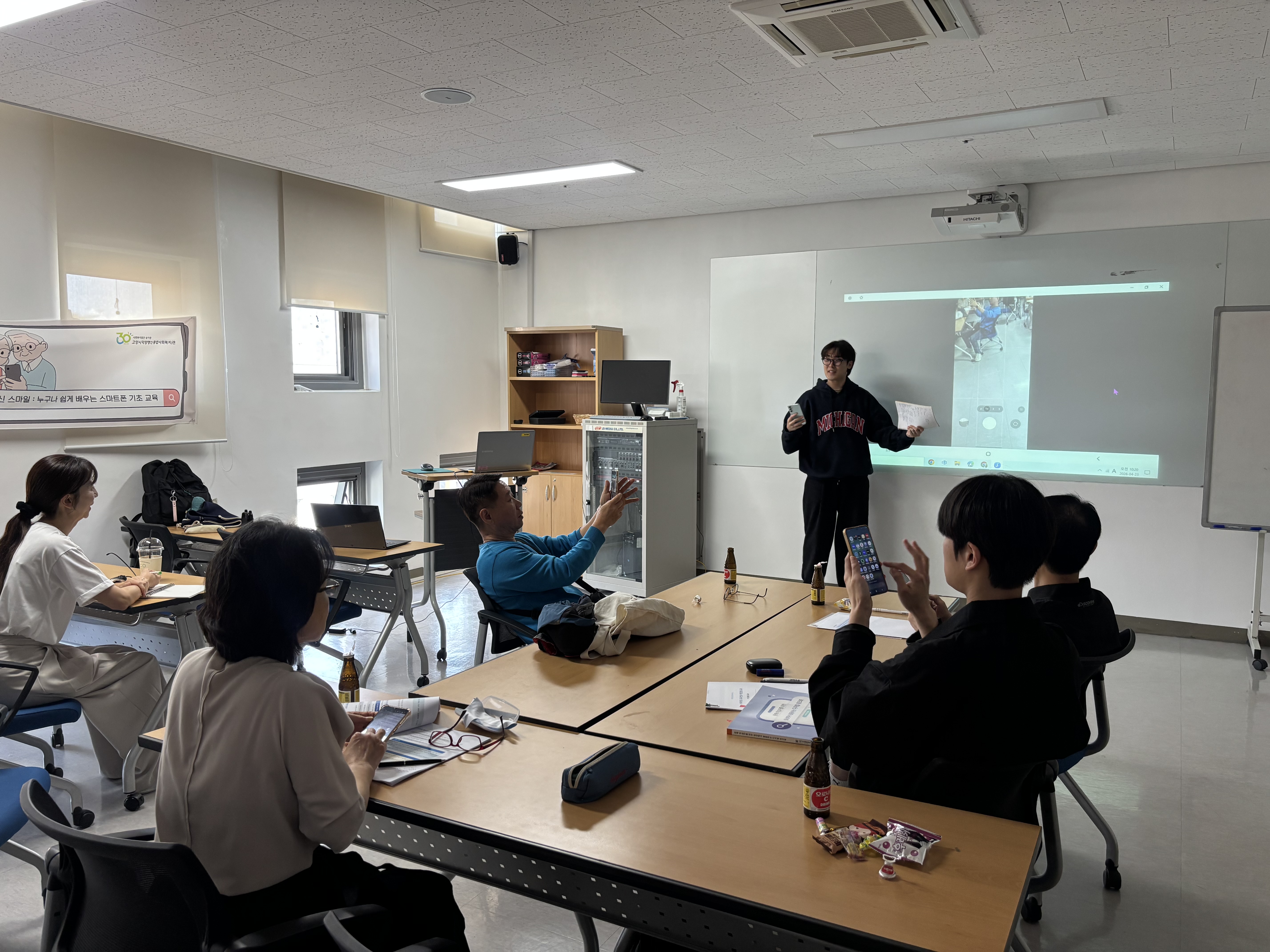 ![]() 스마트폰 기초교육 ‘스마일’ 사업의 원활한 운영을 위해 자원봉사자 기본교육 2회기를 진행했습니다 이번 교육에는 대학생 봉사자 2명과 시니어 봉사자 3명이 참여하여 실제 교육 상황을 반영한 실습 중심 교육이 이루어졌습니다. ![]() 특히 대학생 봉사자들이 직접 교육 내용을 시연해보고, 강사님이 이에 대한 피드백을 제공하는 방식으로 진행되며 설명 방법과 지도 스킬을 한층 더 보완할 수 있는 시간이었습니다.