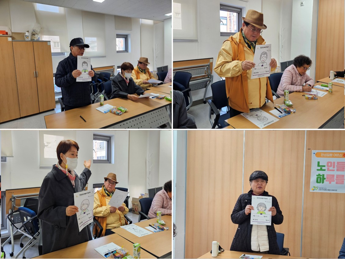 “프로그램 취지를 알 수 있어 좋았다.” “노래로 분위기가 밝아져 즐거웠다.” “앞으로의 활동이 기대된다.” 참여 어르신들께서는 위와 같은 소감을 전해주셨습니다. 앞으로도 만성질환 어르신들의 주도적인 건강관리역량 강화를 위해 지속적으로 노력하겠습니다.