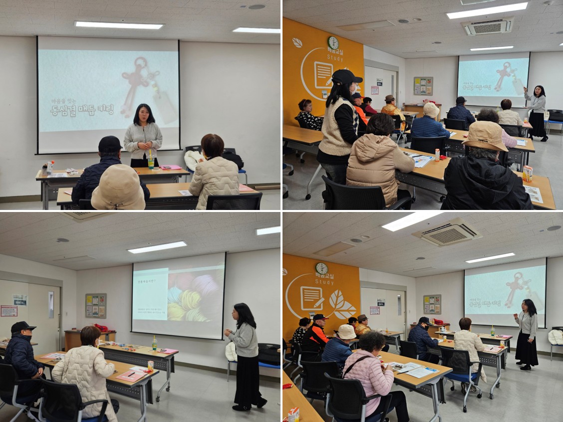 “이렇게 돌려서 끼우면 돼요~” “아, 맞네! 이제 알겠다!” 어르신들 사이에 자연스럽게 오가는 대화와 웃음 속에서 활동 분위기는 점점 더 따뜻해졌습니다 ? 완성된 전통매듭을 손에 쥐고 바라보시며 어르신들께서는 이런 말씀을 해주셨습니다. “이거 너무 보람차네~” “손주가 준 키링이랑 같이 가방에 달면 너무 예쁘겠다!” “이야기하면서 하니까 시간 가는 줄 몰랐어?”