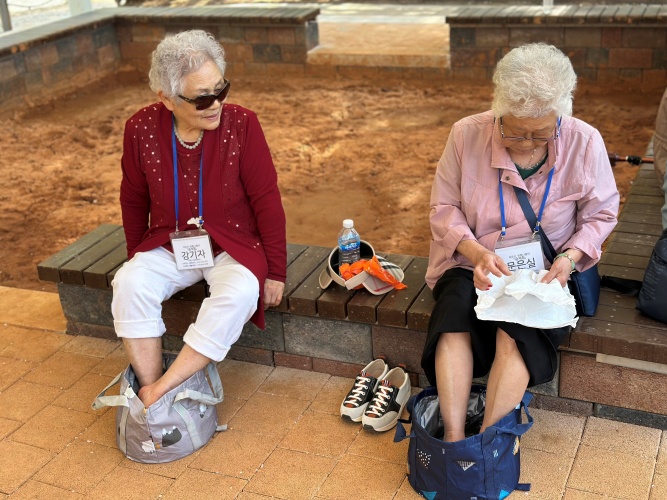 마지막으로 맨발로 황토 길을 걷고 아 로마 향을 가득 담은 마사지로 족욕을 하였습니다. 처음 황토 길을 걸어본 어르신들은 "발바닥이 아픈 것 같더니 시원한 물로 족욕을 하고 나니 몸이 훨씬 가벼워 진 것 같다고" 하시며 병원보다 낫다고 하셨습니다.
